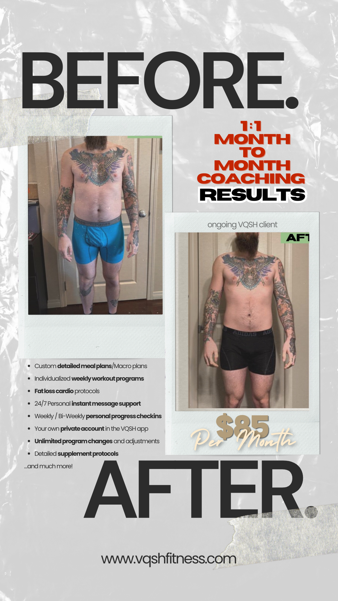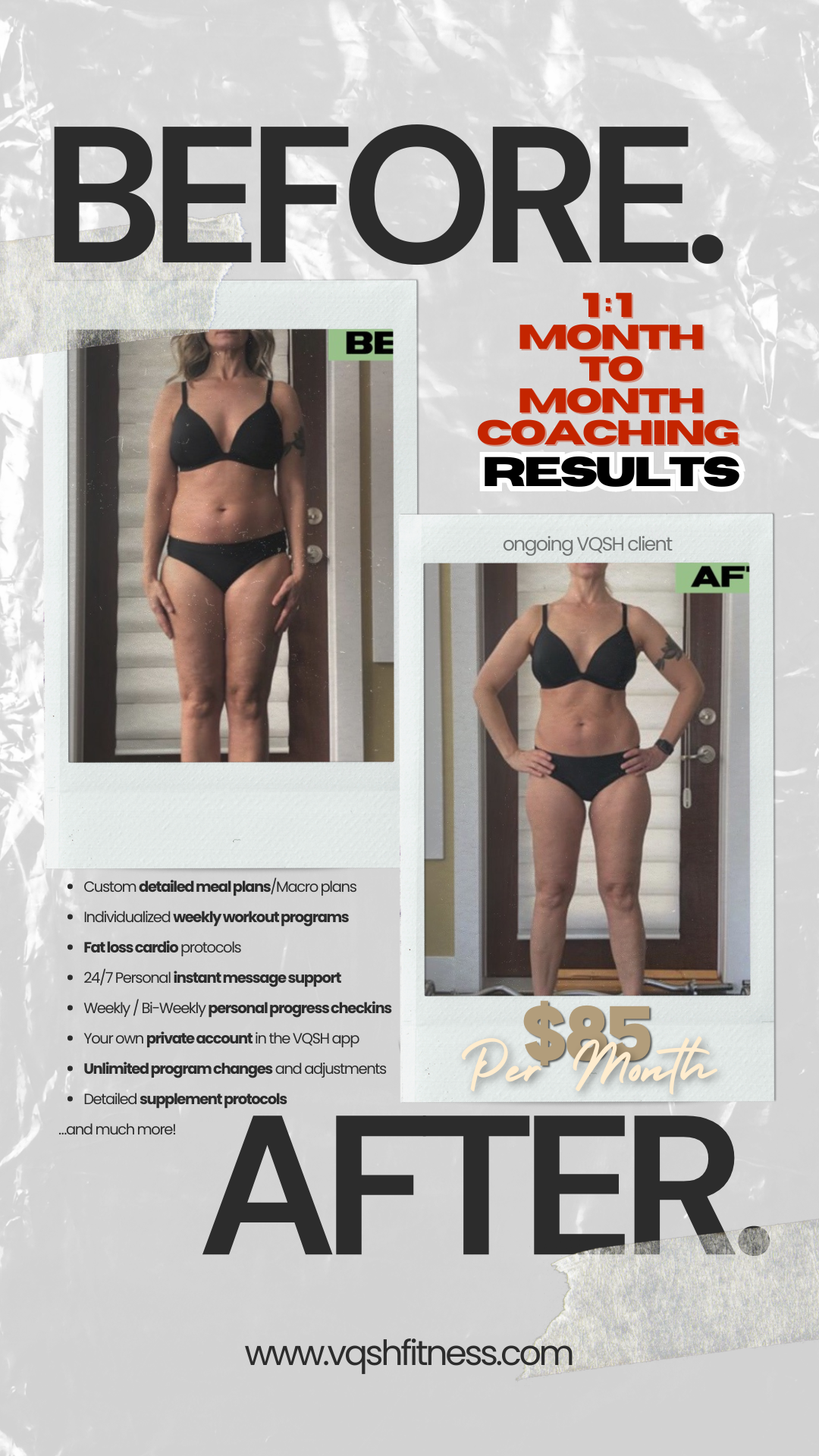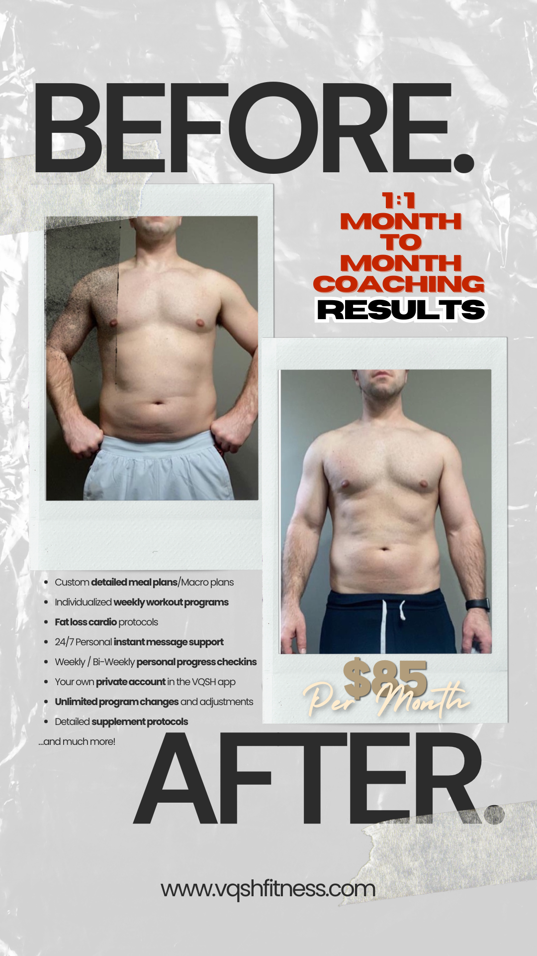 You don't need to drain your wallet to transform your health. VQSH Fitness offers affordable coaching, so you can invest in yourself without financial strain.