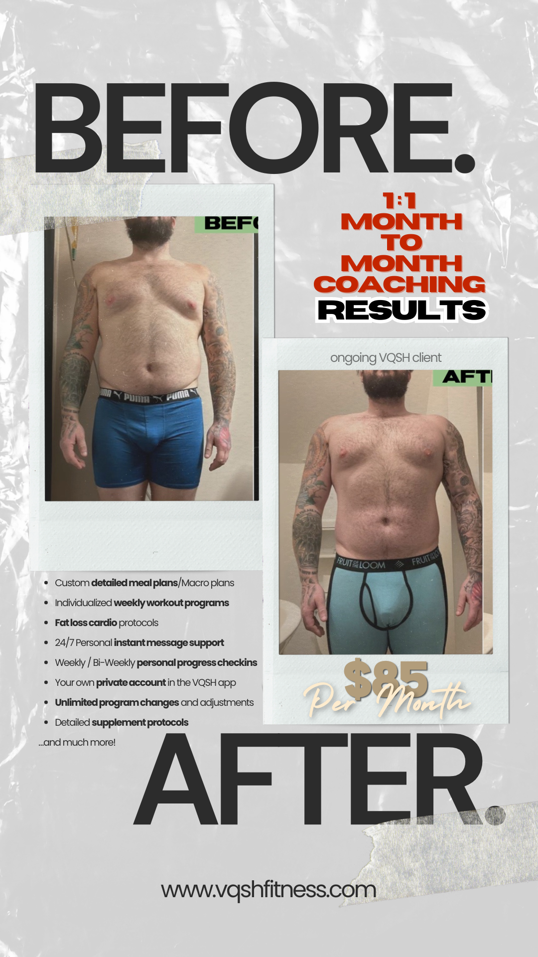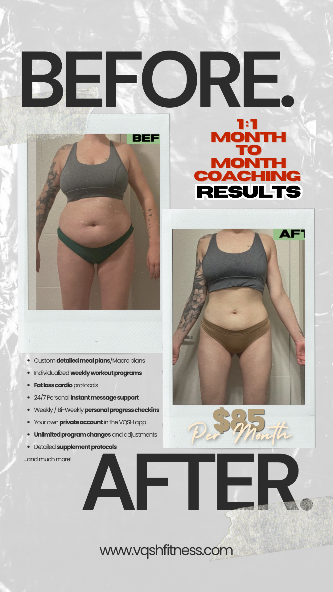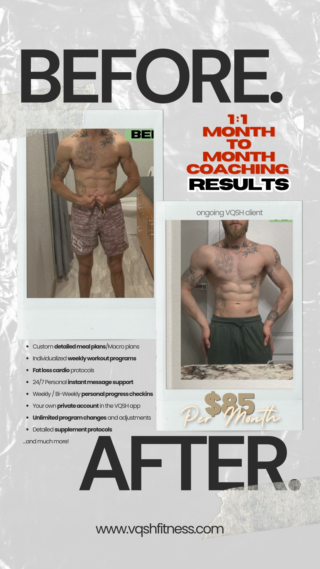 You don't need to drain your wallet to transform your health. VQSH Fitness offers affordable coaching, so you can invest in yourself without financial strain.